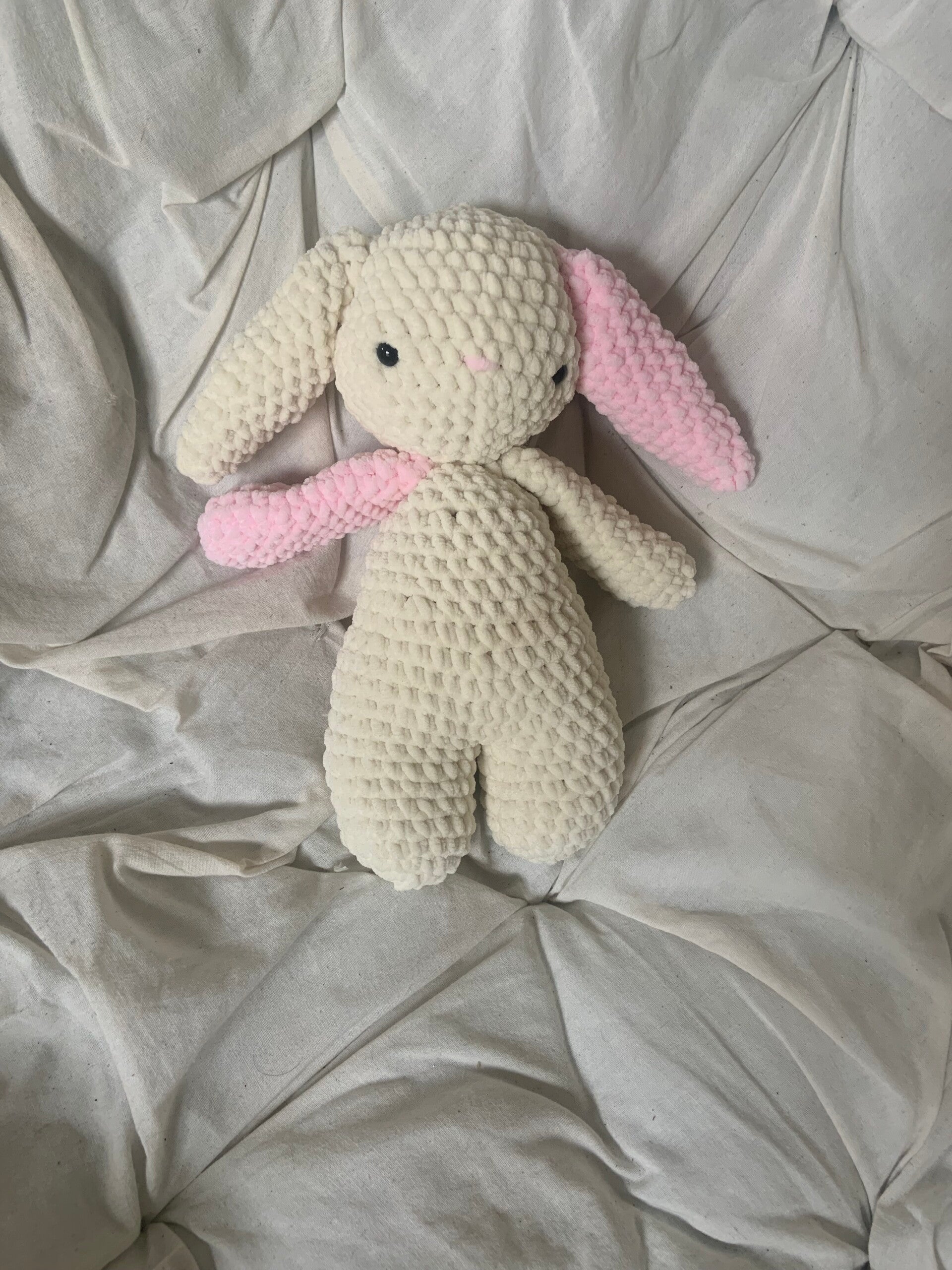 Made from 100% soft velvet. This is one of the first plushies I've ever made, you can see that in the small holes in the body. That is why it is a little bit cheaper than you might expect. It is about 28 cm tall. Not my pattern, the pattern is from Heather Corinne Crochets on YouTube.